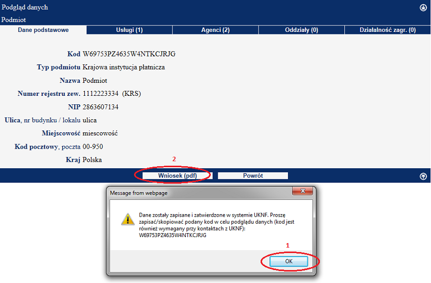 Dane wprowadzone do systemu zostają skojarzone z unikalnym kodem (tworzonym przy pierwszym zapisie), który jest ważny przez 30 dni od daty ostatniego zapisu i może być używany do edycji/poprawiania wpisanych informacji. Po upływie 30 dni od daty ostatniego zapisu, dane zostaną usunięte z systemu. Aby dane zostały przetworzone przez UKNF, należy je zatwierdzić.