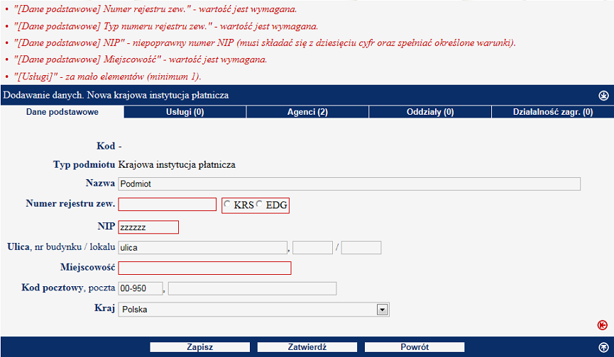 Wprowadzanie danych w Rejestrze Usług Płatniczych